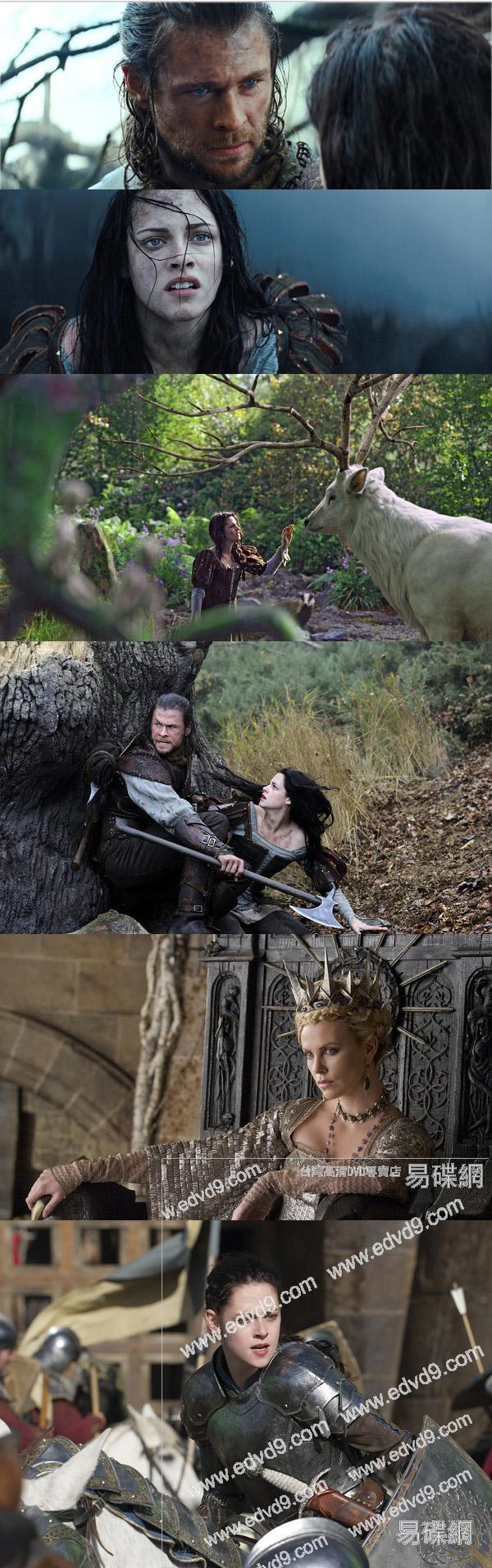 很久很久以前,在一個美麗華貴的國度,善良而迷人的白雪公主(克裏斯汀·斯圖爾特 Kristen Stewart 飾)降生到這個世上。她用有讓人欣羨的家境與童年,但是好景不長,他的母親過早去世,祖國遭遇神秘的黑色軍隊襲擊,更為絕望的是父王將偶然相遇的絕世美女拉文娜(查理茲· 塞隆 Charlize Theron 飾)迎為新的王後。拉文娜帶來了難以想象的災難,她狂暴與黑暗的欲望使她攫取了整個國家。在得知王後將要加害自己之時,白雪公主奮力從城堡逃脫躲入黑森林。不久,肩負著殘酷使命的獵人(克裏斯·海姆斯沃斯 Chris Hemsworth 飾)尾隨而至……