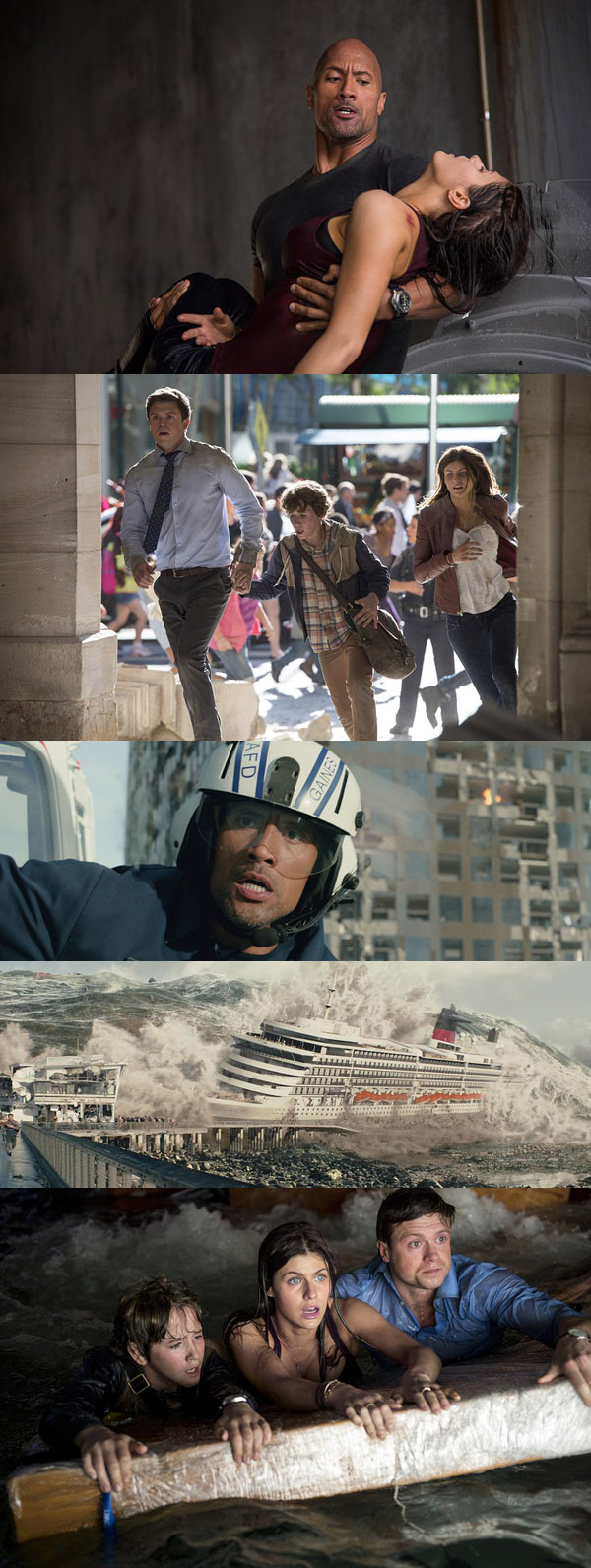 前美國大兵雷蒙德·蓋恩斯(道恩·強森 Dwayne Johnson 飾)在結束硝煙戰火的生涯後,而今成爲洛杉矶消防局的直升機救援人員。雖然工作中全力以赴,受人敬仰,值得信賴,這些卻都無法挽回他失敗的婚姻。某次短暫休假後,雷重返崗位,這時在內華達州南部發生了百年不遇的大地震,胡佛水壩在強震中被徹底摧毀。未過多久,又壹輪強震從舊金山襲向了洛杉矶,雷在直升機上目睹了繁華城市轉眼變成廢墟的可怕壹幕。 此時他的妻子艾瑪(卡拉·古奇諾 Carla Gugino 飾)和女兒布蕾克(亞曆珊德拉·達達裏奧 Alexandra Daddario 飾)此時分處兩座城市,爲了拯救最愛的兩個人,他只身壹人,勇往直前,與地震展開爭分奪秒的賽跑……