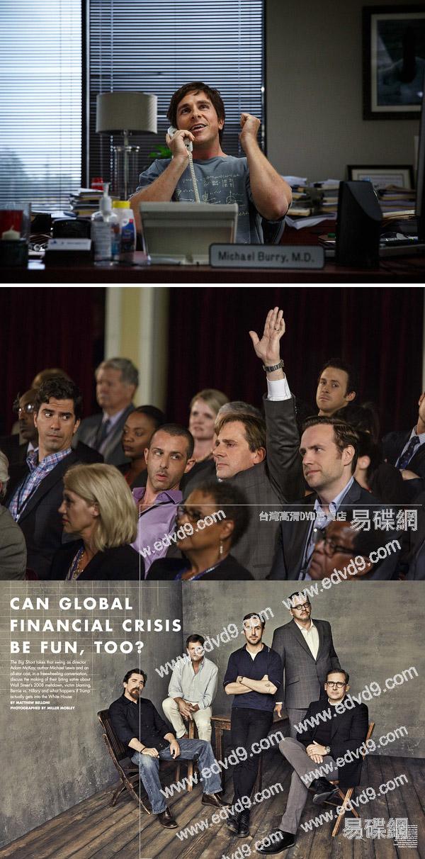 這部影片將鏡頭對准了2008年全球金融,講述華爾街幾位眼光獨到的投資鬼才在2007年美國信貸風暴前看穿泡沫假象,通過做空次貸CDS而大幅獲益,成爲少數在金融災難中大量獲利的投資枭雄的故事。據悉,瑞恩·高斯林將扮演壹個能把40億美元單子做成37億美元收入的德銀代理人格雷格-李普曼(Gregg Lippmann) ;克裏斯蒂安·貝爾扮演獨眼基金管理人邁克爾·巴裏(Michael J. Burry) ;史蒂夫-卡瑞爾扮演華爾街世家出身的史蒂夫·艾斯曼(Steve Eisman);布拉德·皮特將扮演康沃爾資本的本·霍克特(Ben Hockett)。