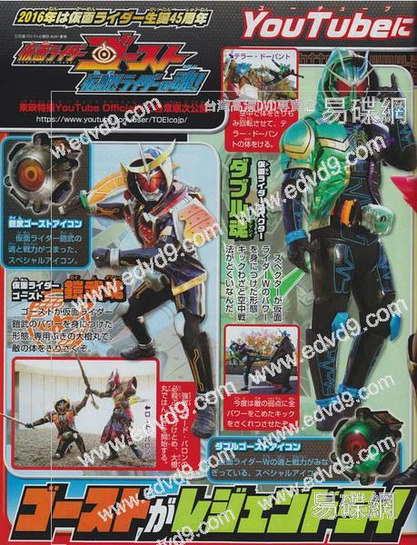 《假面騎士Ghost》(日語:仮面ライダーゴースト,英語:Kamen Rider Ghost),從2015年10月4日起於朝日電視台放映,每週日早上8:00-8:30播出的日本特攝電視劇,假面騎士Ghost也是該劇主角變身的名字,本作為平成假面騎士系列第17部作品,同時也是假面騎士系列誕生第45周年的紀念作。口號是「燃燒生命吧!」、「英雄,一度死而復生」、「幽靈眼魂爭奪戰!!」。