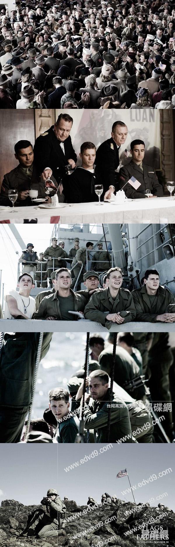 1945年2月,被喻為“太平洋的絞肉機”的硫磺島戰爭結束。在戰鬥的第五天時,五名美軍海軍士兵、壹名軍醫、壹名隨軍記者壹起“締造”了壹張英雄的照片,壹張象征國家勝利的照片:他們將美國國旗插在了硫磺島的制高點。當照片登上美國各大報紙頭條的時候,當時的六名英雄中的三人甚至還不及知道自己成為英雄而英勇犧牲了。幸存下來的其余三人戰後卻對那場戰爭只字不提,仿佛他們未曾參與那場戰爭。因為他們不是為了成為英雄才走上戰場,他們是為了國家而戰,當他們看到身邊的夥伴壹個個倒下時,他們覺得生命的意義也在壹點點流失……