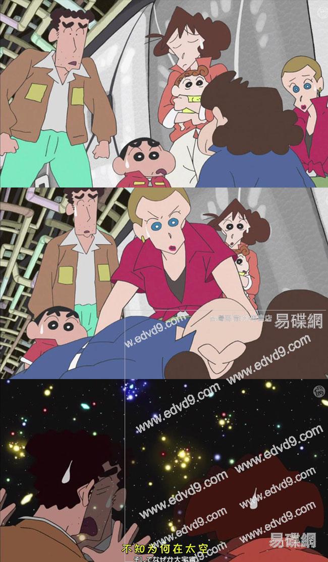 根據故事內容,小新一家一覺醒來,發現自己已經身處神秘的宇宙船中,並被卷入各種神奇事件中。別看小新是個小孩子,已經有打敗過神秘力量、怪獸等正常人無法對付的敵人,因此宇宙冒險也絕對不會妨礙他繼續露出大象跳屁股舞,和美女大姐姐(說不定是外星美女)調調情。