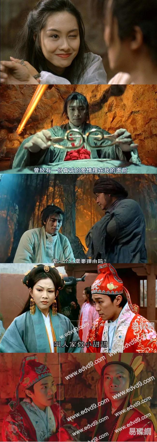 劇情簡介: 至尊寶(周星馳 飾)被月光寶盒帶回到五百年前,遇見紫霞仙子(朱茵 飾),被對方打上烙印成為對方的人,並發覺自己已變成孫悟空。 紫霞與青霞(朱茵 飾)本是如來佛祖座前日月神燈的燈芯(白天是紫霞,晚上是青霞),二人雖然同一肉身卻仇恨頗深,因此紫霞立下誓言,誰能拔出她手中的紫青寶劍,誰就是她的意中人。紫青寶劍被至尊寶於不經意間拔出,紫霞決定以身相許,卻遭一心記掛白晶晶(莫文蔚 飾)的至尊寶拒絕。後牛魔王救下迷失在沙漠中的紫霞,並逼紫霞與他成婚,關鍵時刻,至尊寶現身